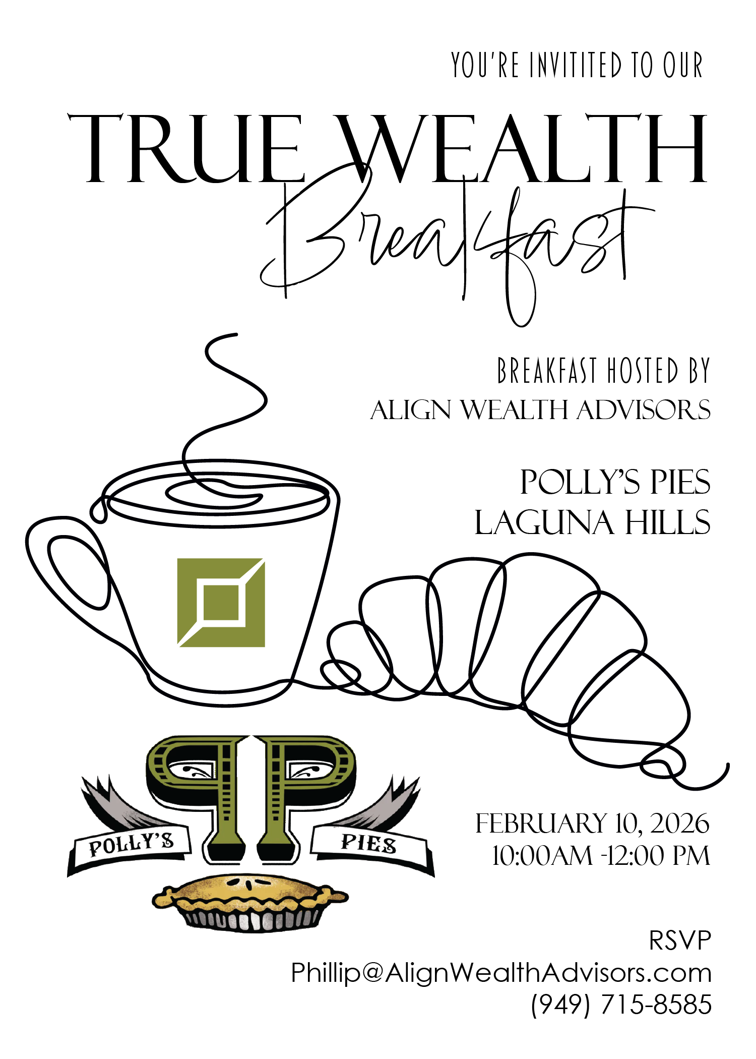 Join us for breakfast FEBRUARY 10, 2026 @ 10AM for a conversation about Turning Your Assets into Income. We look forward to speaking with you about your investing goals and how best to achieve them to ensure a fun, stress-free retirement!